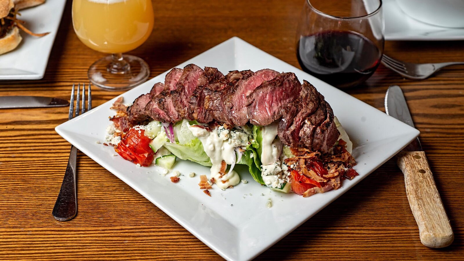 Mason jar with chocolate, vanilla cream and crushed cookies